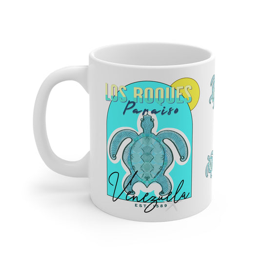 Los Roques Paraiso design, Venezuelan Beaches Collection, White Ceramic Mug.